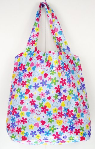Trendy Sturdy Shopping Tote Bag - Color Flowers Hearts Pattern Review